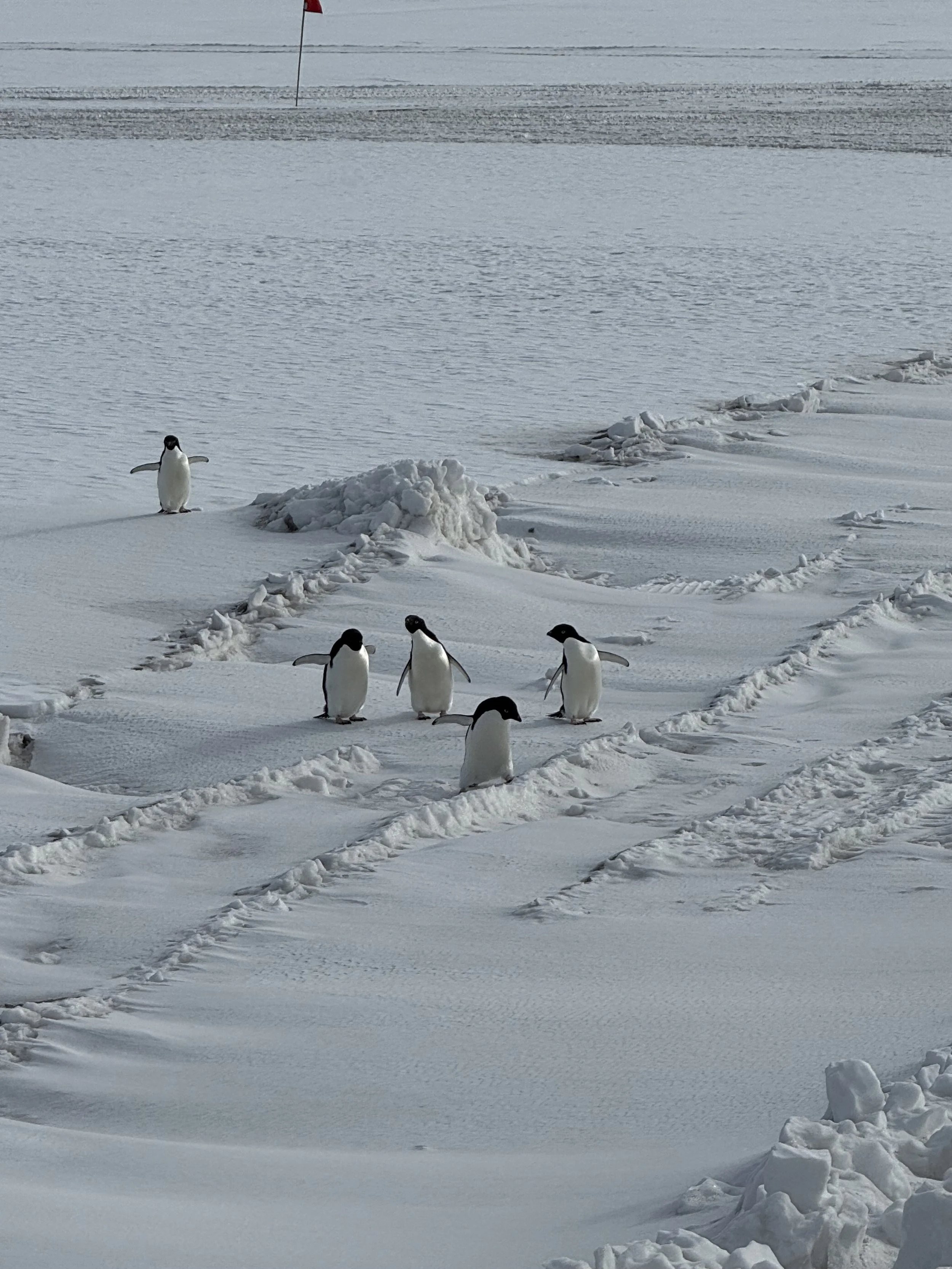 So these little guys are Adelie penguins. They showed up during the man-haul, which is a sled team that goes across Armitage and lands at Scott Base. These cute little fuckers delayed it with their curiosity at seeing all these giants red penguins on the ice (people). One particular penguin stuck around while it’s other buddies scooted off.